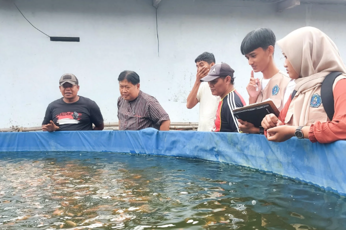 Salah satu anggota tim, Dr. Ir. Enike Dwi Kusumawati, S.Pt., M.P., menjelaskan bahwa penerapan teknologi ini ditujukan untuk meningkatkan efektivitas dan produktivitas budidaya ikan air tawar sebagai fokus utama kegiatan.